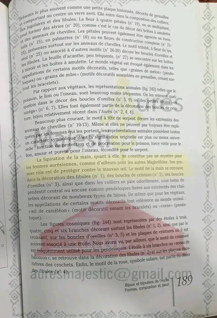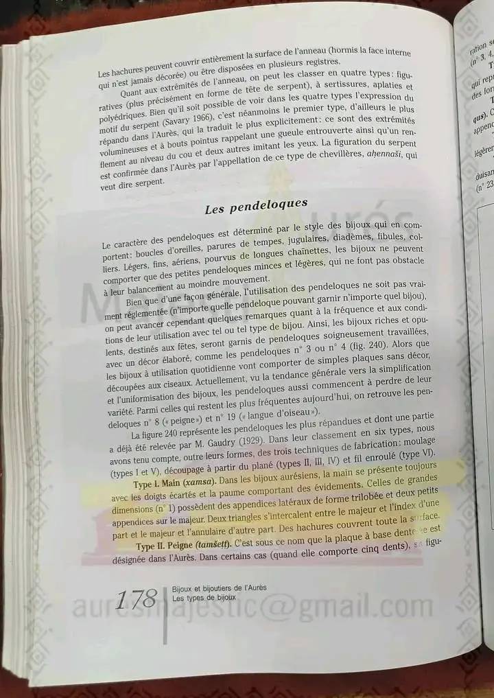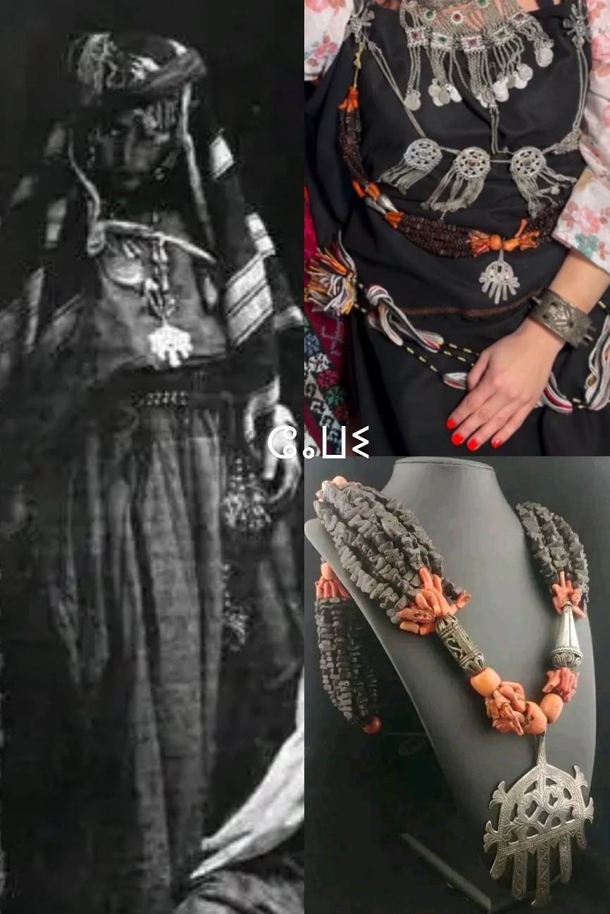 هذه التفاصيل الدقيقة ليست مجرد زينة، بل تحمل في طياتها رموزًا ثقافية ودينية، حيث تُستخدم كتعويذات للحماية من العين الشريرة وجلب البركة والخير. المجوهرات التي تحمل هذه الأشكال تُعتبر من أبرز تعبيرات الهوية الثقافية للأوراسيين، مما يجعلها جزءًا لا يتجزأ من التراث الثقافي للشاوية.